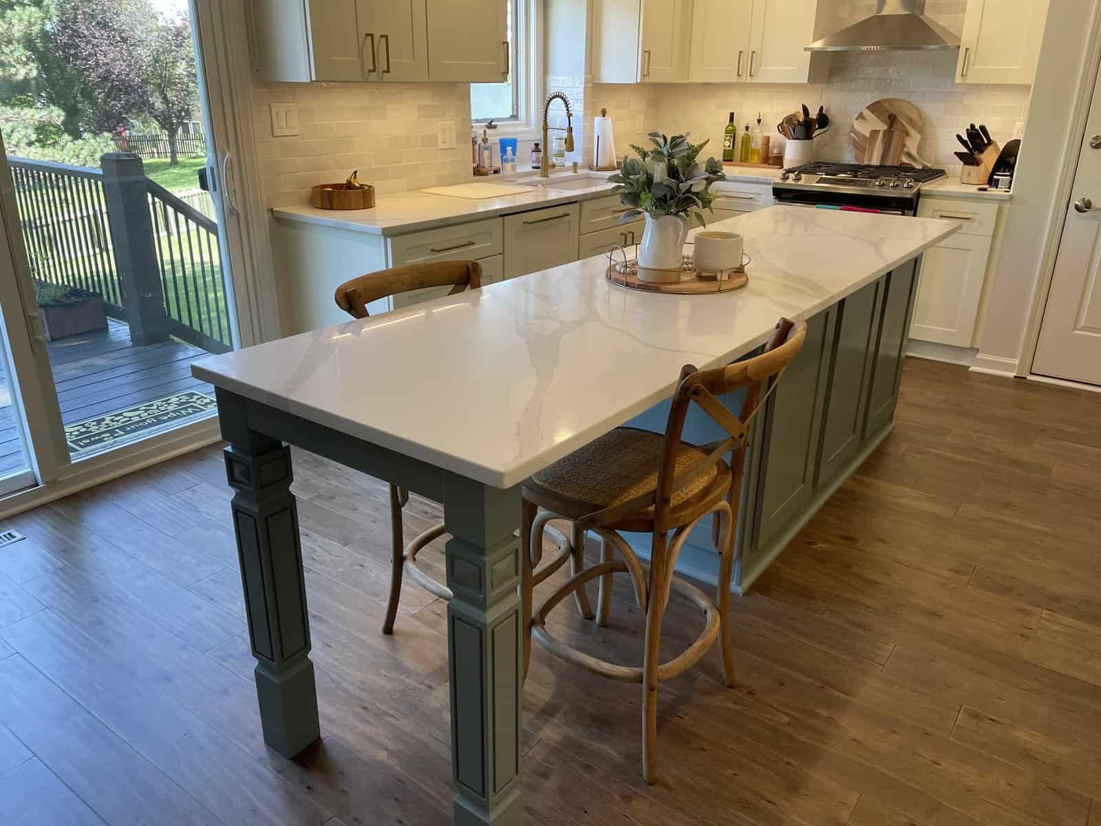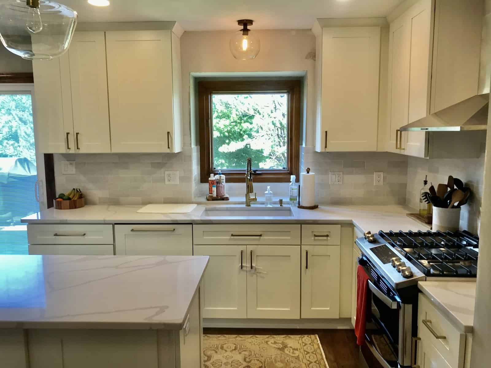 Elegant white cabinetry and marble island in a luxury kitchen remodel by Premium Cabinet Studio.