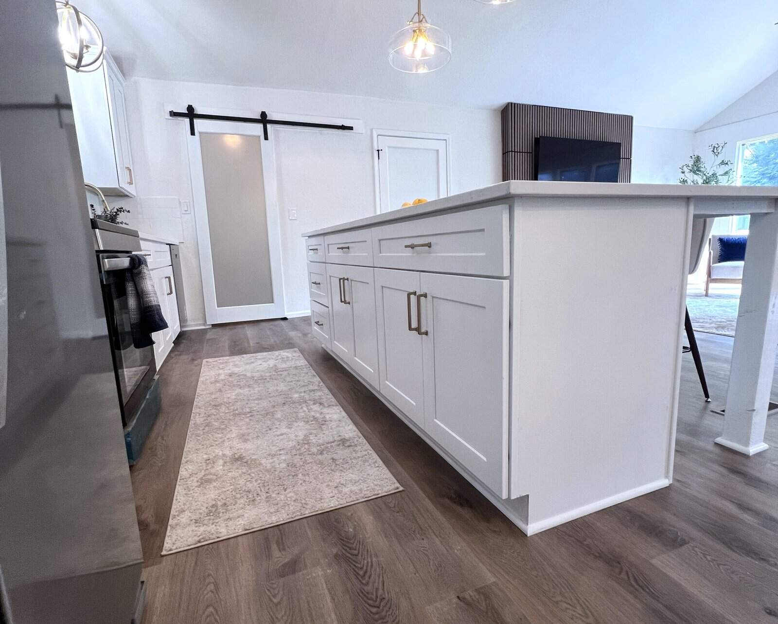 Bright, updated kitchen featuring premium cabinetry, modern appliances, and a spacious island.